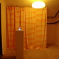 HALLUCINEX: inštalácia, záves, stropné svietidlo, farebná žiarovka, podstavec, pohár, uv lampa,toniková voda, 2016